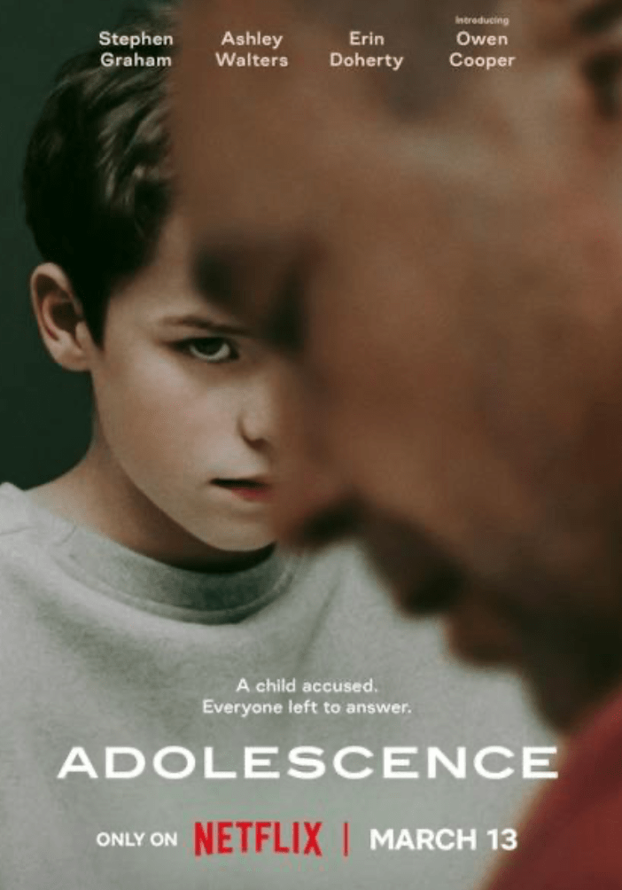 Adolescence è una miniserie televisiva britannica, in quattro episodi, del 2025, ideata da Jack Thorne e Stephen Graham e diretta da Philip Barantini. Utilizzando un unico piano sequenza per episodio, segue da diverse prospettive il caso di omicidio di un’adolescente, di cui è accusato un compagno di classe, il tredicenne Jamie Miller (Owen Cooper).
